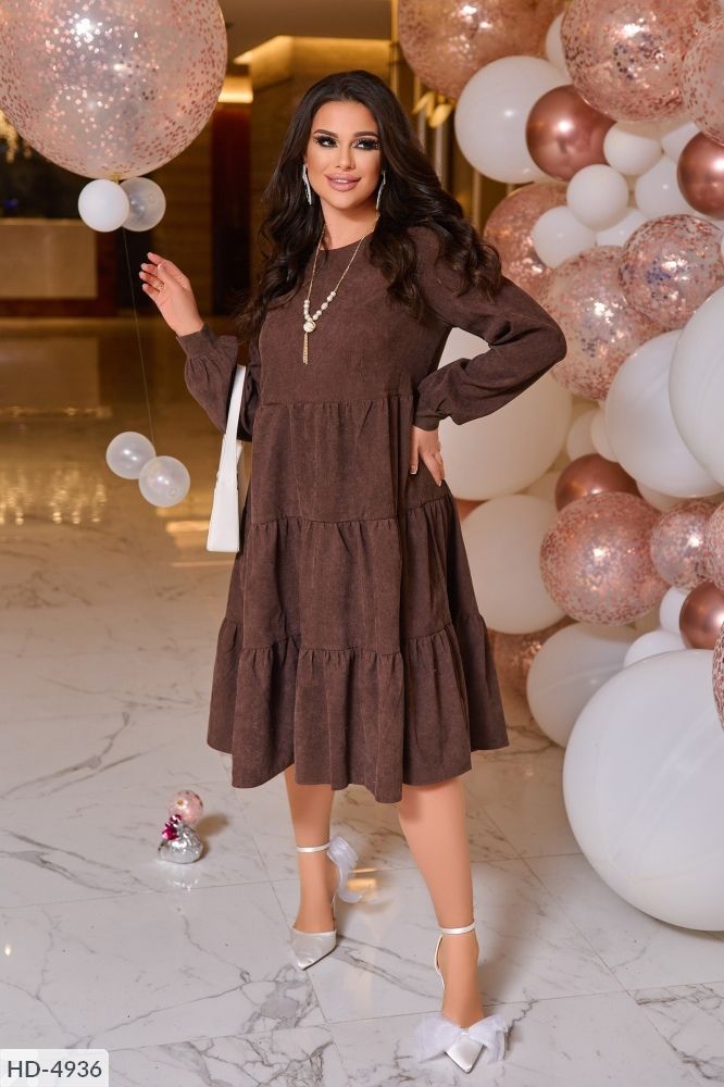 Сукня коричневий Матеріал: вельвет Розтяжність: немає розтяжності Орієнтовні виміри готового виробу: 46-48 р - р: довжина сукні 109см, довжина рукава від плечового шва 64см, обхват рукава 36см, ог-96см, от (завищена)- 92см, об (по другому поперечному шву) - 130см. 50-52 р-р: довжина сукні 111см, довжина рукава від плечового шва 65см, обхват рукава 38см, ог - 102см, от (завищена) -102см, об(по другому поперечному шву) -146см. 54-56 р - р: довжина сукні 115см, довжина рукава від плечового шва 65см, обхват рукава 42см, ог-110см, от (завищена)- 110см, об(по другому поперечному шву) - 158см. 58-60 р-р: довжина сукні 115см, довжина рукава від плечового шва 66см, обхват рукава 44см, ог - 120см, от (завищена) -118см, об(по другому поперечному шву) -170см. 62-64 р-р: довжина сукні 117см, довжина рукава від плечового шва 67см, обхват рукава 46см, ог - 128см, от (завищена) -126см, об(по другому поперечному шву) -186см. 66-68 р - р: довжина сукні 119см, довжина рукава від плечового шва 67см, обхват рукава 50см, ог-134см, от (завищена)- 140см, про(по другому поперечному шву) - 196см.