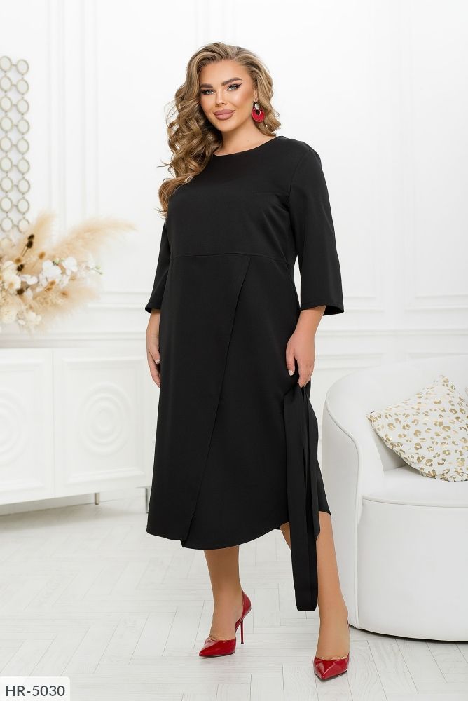 Елегантне і жіночне плаття міді, що створює цілісний і гармонійний жіночий образ, буде доречно як на прогулянці або зустрічі з друзями, так і на будь-якому вечірньому заході. Однотонна модель мінімалістичного крою з довгими рукавами довжиною 7/8 привертає увагу в першу чергу ефектним злегка асиметричним подолом, підшитим на запах. Модель застібається на ледь помітну блискавку, вшиту в бічний шов.