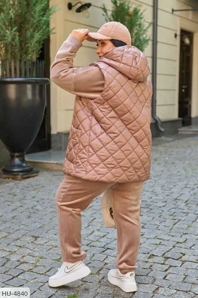 Матеріал: костюм-двосторонній щільний велюр на трикотажній основі, жилет-плащівка, Наповнювач-синтепон 150), підкладка (до-5 ° з)