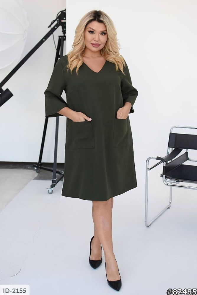 Сукня вільного крою з v-подібним вирізом на грудях, з боків дві кишені