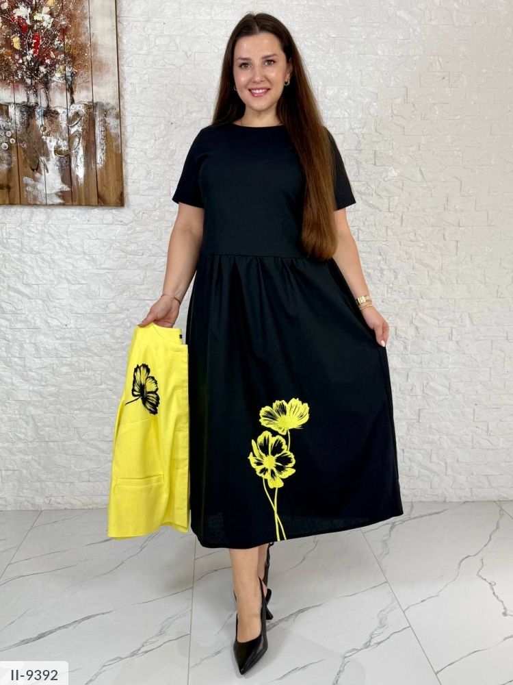 Класичний костюм-двійка, на жакеті чорний накат, на плаття накат в колір жакета.
