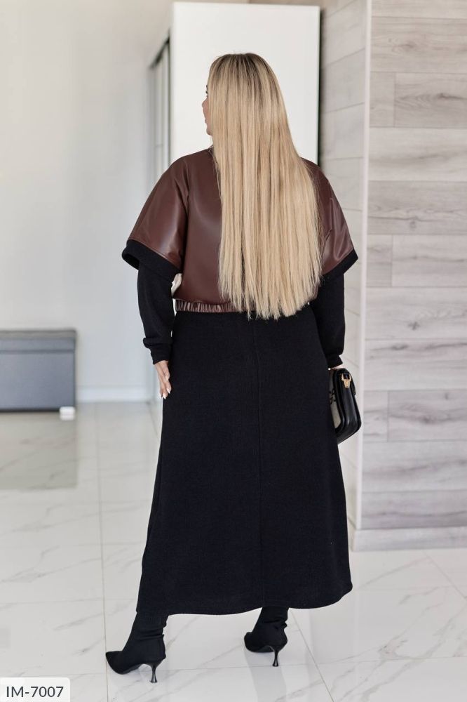 Колір- чорний жилет + чорна сукня, шоколад жилет + чорна сукня, капучино, графіт, шоколад, бордо, теплий бежевий.