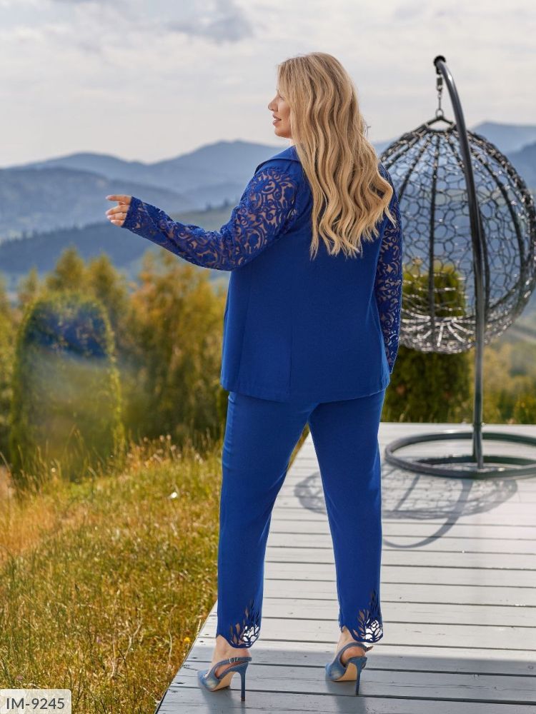 Костюмка діагональ + рукава мереживо з вишивкою + лазерна різка на брюках.
