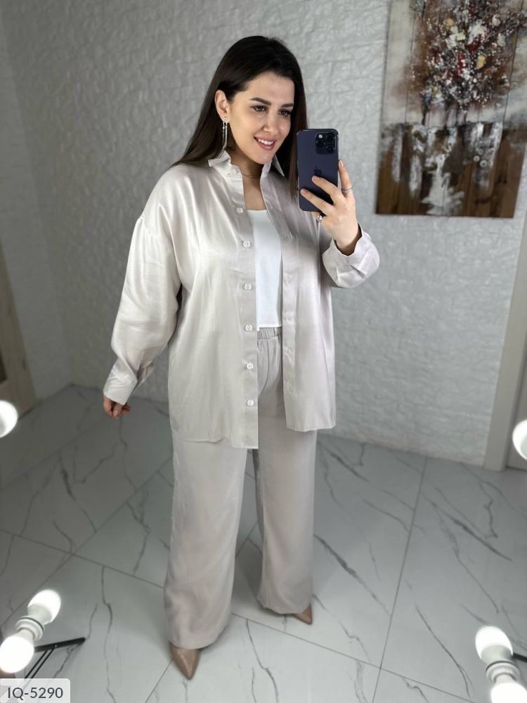 Костюм-двійка: сорочка + штани кльош, блискуча, якісна тканина зі срібним напиленням, переливається гарним сяйвом на світлі, класні кольори, в такому костюмі ви не залишитися не поміченою