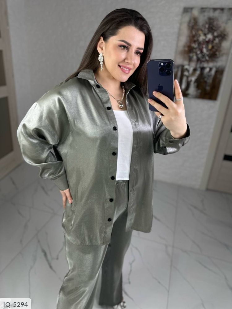 Костюм-двійка: сорочка + штани кльош, блискуча, якісна тканина зі срібним напиленням, переливається гарним сяйвом на світлі, класні кольори, в такому костюмі ви не залишитися не поміченою