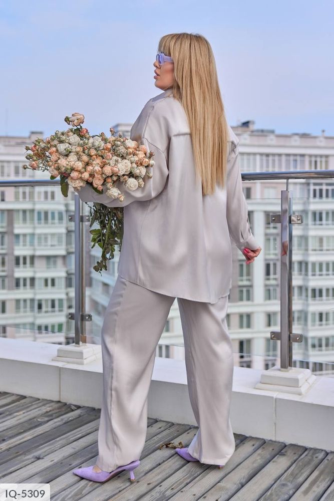Костюм-двійка: сорочка + штани кльош, блискуча, якісна тканина зі срібним напиленням, переливається гарним сяйвом на світлі, класні кольори, в такому костюмі ви не залишитися не поміченою